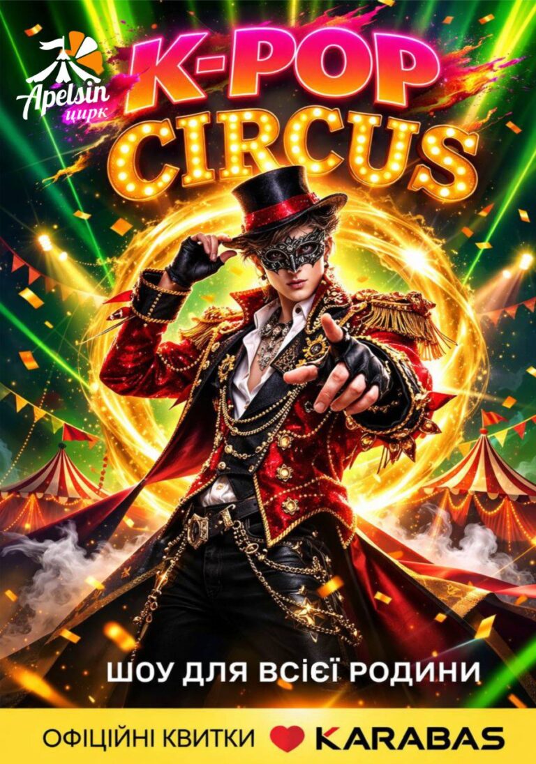 Святкуємо разом! Уявіть собі сяючу софітами сцену, де яскраві кольори, динаміка сюжету переплітаються з магією цирку. Так, це Цирк у стилі K-pop — енергія на максимумі, коли кожний зірковий трюк створений неймовірною феєрією.